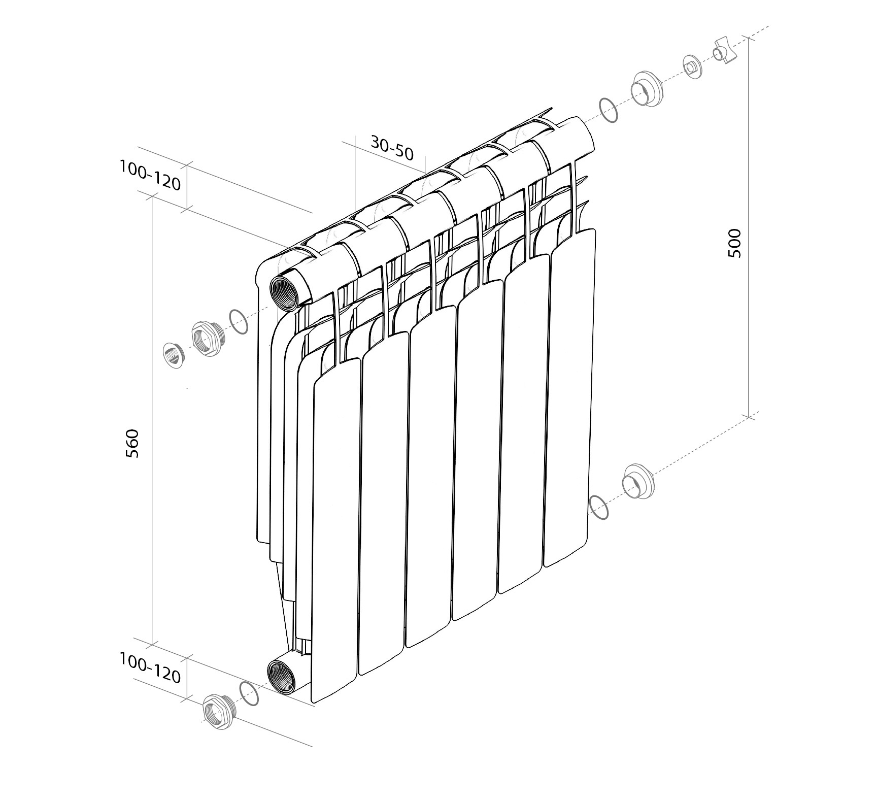 Дополнительное оребрение на вертикальном коллекторе секции увеличивает теплоотдачу радиатора на 5%. Такое решение способствует более быстрому обогреву помещений при том же размере и весе секций.